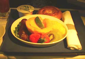 | 爆睡していたらもう到着前だ。友人はフルーツプレートを。僕はオムレツをチョイス。分っちゃいるけど失敗だ。 | ||
