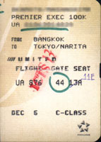 | 5:00にRCCに移動してチェックイン。11Fを確保。後は乗って成田にストップオーバーするだけ。ここで貰ったボーディングパスは初めて見る用紙だった。 |