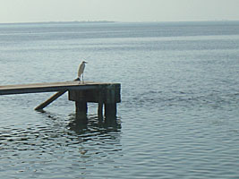 | 橋を超えたところでクルマを停めた。 良い陽気である。鳥までのんびりしている。 ちょこちょこ停めるところがあるのだが、そこにはちっちゃな浜がありバーベキューも出来る。トイレもある。もちろん無料です。しかもゴミ一つ無く奇麗に管理している。すばらしい。 |