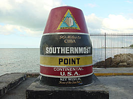 | 10/05。 SheratonSuitesKeyWestに一泊して翌朝北米最南端の地The Southernmost Pointへ。ガイドブックなんかにはここはともかく観光客が多いので人間を入れずに撮影することは不可能らしい。 |