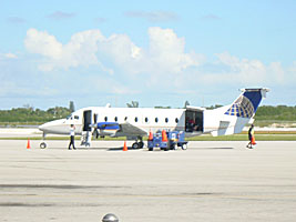 | やってしまいました。空港(サンタバーバーラよりちょっと大きい)に到着したらファイナルコールが。既にチェックインカウンターには人がいない。そりゃそうだ担当は一人しかいないんだからゲートから何から全部一人だ。しょうがないので後の便にて3時間遅れでMCOへ。と言っても次の便だけどね。 乗るのはContinentalConnection(ガルフストリーム運航)CO便だったりUA便だったりNW便だったりする。 |