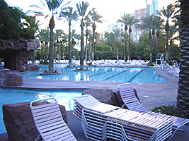 | 今回のラスベガスのホテルは初めてのFlamingo Las Vegas。この時期のラスベガスは寒いので当然プールに何て人はいない。 |