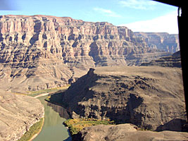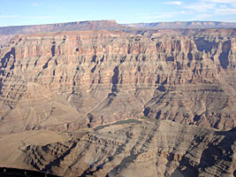 | ブラックジャックで稼げたのでグランドキャニオン観光を予約した。パターンは(01)飛行機(02)バス(03)ヘリコプター。グランドキャニオンはヘリコプターに限る。谷間に降りてくれるし、山肌に沿って飛行してくれる。 |