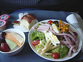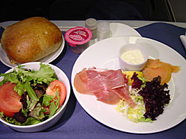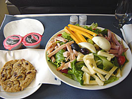 | ORD-LGAで出たサラダ。結構おいしかったりする。右はJFKを上空から。 |