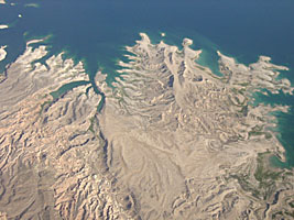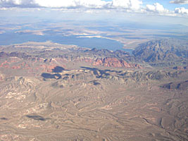 | グランドキャニオン上空、同じ機内から撮った。まるで人工衛星から撮影したようであった。とてもこの世の物とは思えない。 |