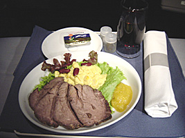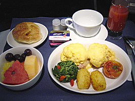 | 機材が747になったせいかアップグレードが取りやすくなったような気がする。発券が前日だったこともあり直前のアップグレードもウェイティング。チェックインしたところ通路側が空いていないのでど真中。久し振りだな。 |