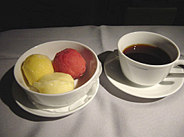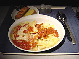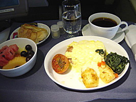 | なんなくアップグレードは出来ました。ゲートからはバスです。寒いです。搭乗してみるとビジネスクラスの中央は空いているではないか。バンコク線でこんなことは初めてだぞ。 |