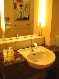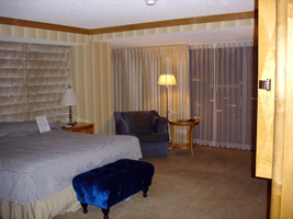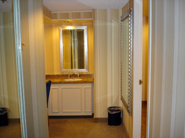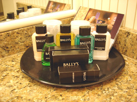 | 今回のホテルはBally'sです。いつものFlamingoより安かったから。空港でチェックインするときに$30でアップグレードするけどどうするって聞かれたけどお断り〜。 Bally'sで正解である。実は初めてなのだが腐ってもBally'sなのであった。こうなるとFlamingoは腐ったフラミンゴだな。部屋の大きさは3倍はある感じ。 |