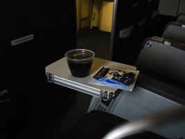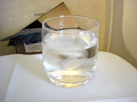 | さてと、落し物を拾わないとね。ファーストクラスのグラスは変ったかな? |