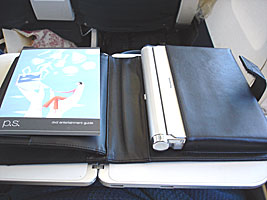 | それはそれとして、757によるp.sサービス。P.C.Yによる3クラスフライトである。ボーイング757-200の3クラス。以前はトランスコンチに国際線機材が巡ってくるのを狙っていたのだがこっちでもいいかも。 757に搭乗してみると意外や意外、なんともいい雰囲気。機内の大半がビジネス以上なわけだ。それに最後尾のエコノミーも全席エコノミープラスなわけだ。ちょっとお気に入り〜。 国際線のビジネスクラスのシートを皮にしてビデオモニターを取っ払った感じであある。 食事前にDVDプレーヤーを貸してくれるのだが、食事が始まると置き場所がない....。そりゃあオンデマンドなわけだけど置き場所がないのは困るわな。 しかし国内線は混んでいる。ORD-LGA、JFK-SFO、SFO-LASはほぼ満席である。 |