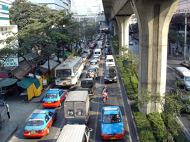 | 東京のようにスモッグは凄い。渋滞も凄い。でも反対車線と両極端。30分位すると反対が混み出す。 |