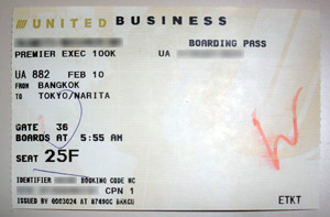 | 幻の初フライトより生還して一ケ月。何事もなかったように変らぬ熱気を帯びる成田空港へ到着。 イージーチェックインで十分だと言うことで使おうと思ったが、「今日のあんたのフライトは二つあるがどっちじゃ?」とのお言葉。一つはNRT-BKK、もう一つはORD-MCOとなる。昔の記録がAPOLLOの記憶に残っていたのでしょうか?思わずオーランドに行きそうになりました。が、お約束のように「なんか変だからチェックインカウンターへ行ってっちょ」。このお言葉により500マイル喪失。PNRの変更をばんばんやっているのでよくある話です。ただ〜し、日本語を選んで進んでいっても最後の肝心なインフォメーションが英語になっちゃうのはまずいんじゃないの? |
