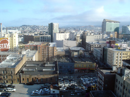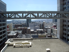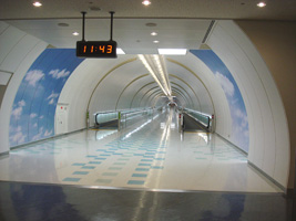 | SFO到着。イミグレでババを引いたので時間がかかりましたが、税関前にNGOから到着した知合いと合流。ダウンタウンまではBARTで$5.15だったかな。BART内部はやはり汚いです。どうも好きになれないわん。案の定、チケットを買うのに手間取り、一本逃す。次まで約30分。こういうのが嫌なのよね。だから「現地集合現地解散手配個別」が一番。 ホテルはHilton。全く問題なし。目の前の通路に行ってみた図。 |