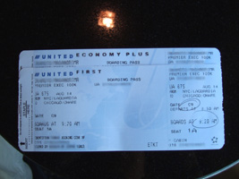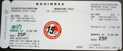 | イージーチェックインは混んでいたので通常ファーストクラスチェックインへ。1Kカードを見せるとファーストクラスレーンでセキュリティーを通れるらしい。セキュリティーをちらっと見つつ今回初めてUSのラウンジへ。ここはゲートABのセキュリティーの外にある。元はアメリカウェストのラウンジ?それとも元々あった? 受付で1Kカード(1Kカードを人に見せるのは何年ぶりでしょうか?)を見せて搭乗券を渡して「国際線乗継ぎだよ〜」入出許可を頂きました。ラウンジに無線は来てませんね。それどころか空港の無線さえ届いていない。 SFO-NRTのボーディングパスにはパスポートナンバーは印字されていない。 |