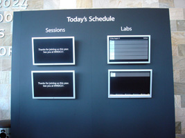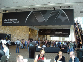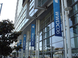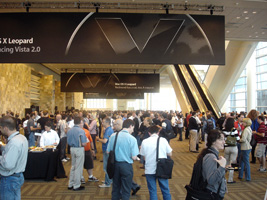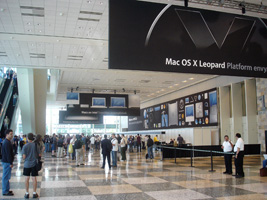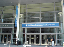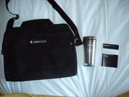 | まずはチェックインして荷物を置いて、WWDCのレジストレーション。なんかバッグが小さいような。年々貧粗に....。去年に比べるとボールペンが減ったな。 |
