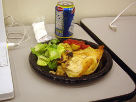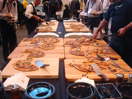 | 夜のレセプションにピザ登場です。1時間半待ちました。味は酷かった。 |