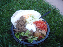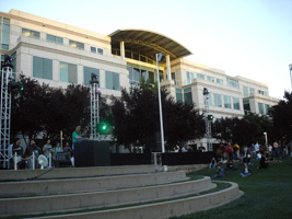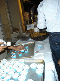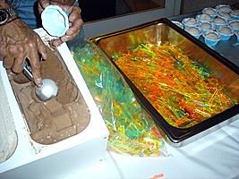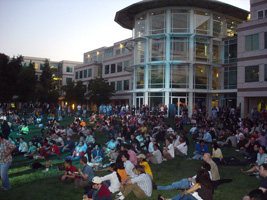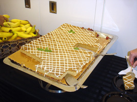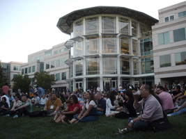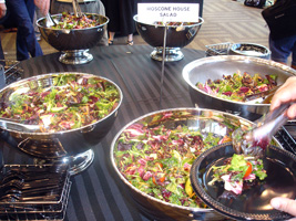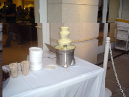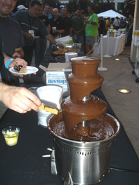 | 前日にレンタカーを借りていたので、早めにリンゴ社到着です。年々酷くなるCampus Bashの料理ですが、今年も酷くなってました。一品物です。餌の配膳は屋外から屋内へどんどん縮小傾向にあります。ん〜チョコレートサーバーがあります。最高であります。100v仕様は無いのか! |