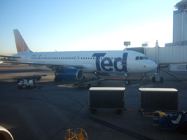 | 悪しきTEDです。UKからの旅行客で満席。みんな透明のビニール袋に持物を入れてます。 ここで怖い思いをした。座席は7Cだったのだが3Dから見つめる黒い瞳....。3時間も見つめる黒い瞳....。怖かった。 |