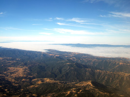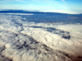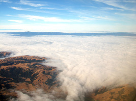 | LAS-SFOは日本人フライトです。あらゆる所から現地係員と旅行者のこの度で一番楽しいかのような会話が聞えてきます。 さぁ搭乗です。一気にSeat2の搭乗券がゲートに詰め寄ります。現地係員との別れを惜しみながら並んでいます。さぁお別れはもうすぐです。もう黒ずくめの服は脱ぎ捨てて結構です。 ガ〜ラガラ、ほぼ日本人だけ。 雲にすっぽりと覆われるSFOに到着です。 |