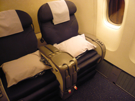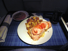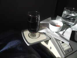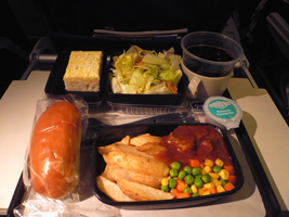 | おそるべしPAX登場です。ゲートに行くと本日の「ウェイティングの人は全員諦めてね」のご案内です。聞いてみるとビジネスクラスのアップグレードは直前に「Y」購入者が現れたようです。持って行かれました....。 2005年6月以来の国際線エコノミークラスです。しかも777のエコノミープラスは初めです。これは広いのでしょうか?シートの後ろにモニターが付いています。プログラムはビジネスクラスと全く変りません。知らなかったのだが、前の席がリクライニングするとその角度にモニターも傾くわけだ。見にくいなと思っていたのだが、何のことはない。モニターの下側が出っ張る構造になっていて角度調整が出来る。素晴らしい。でもエコノミーです。軽く脳貧血気味です。 ご飯も美味しく頂きました。ポテトのフライに牛肉の付け合わせのメインディッシュもちょっとしたおつまみとしてなかなかです。初めての777のエコノミープラスということで記念にコーヒーを頂きました。エコノミープラスということでトレーが手前(へそに付くまで)まで引っ張れません。ちょっと食べにくいというエコノミーとしてはちっちゃな贅沢な悩みです。 |