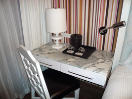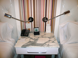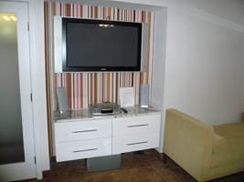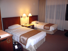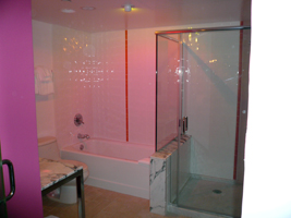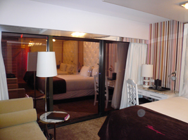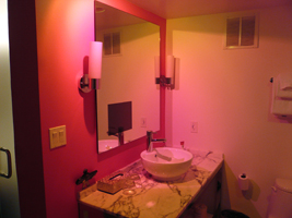 | は、今回もFlamingoです。コンプりました。GO Luxuryだそうです。GO DeluxeとGO Luxuryが何が違うんだかわからない(GO Luxuryの方が高い)が、ベーシックのDeluxeよりは1.5倍高い部屋だそうだ。部屋の広さはたいして変らない物の、独特の雰囲気は醸し出してますね。ピンクピンクピンク....特にバスルームは強烈です。 42インチプラズマディスプレイですね。バスルームにもテレビがあります。但し、リモコンはこのハトヤ坊主から奪わないと使えません。若干安っぽさも感じるかもしれないが、前のよりは格段にいいね、でも高いんだから意味無いか。 |