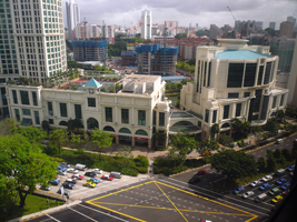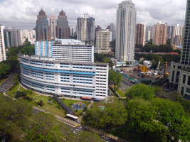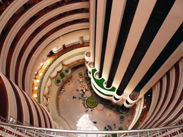 | 今回のホテルはHoliday Inn ATRIUM SINGAPOREです。チャイナタウンの方にありました。吹抜けってます。何時か打上がって月にでも行くのでしょうか? |
