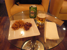 | 長い1日を乗越えサンフランシスコへ向かいます。SIN-NRT-SFOはアップグレードが事前に確定していたので余裕です。チェックインで頂いたインビを持っていつもの(2回目ですが)共用ラウンジです。出るときに気づいたのだがエスカレータを上がって左を向いて左奥にTGのラウンジがあるような感じです。場所は以前と同じ場所だが入口は隠すようしてあります。 まだ入れてくれないのでしょうか?次回の宿題に取っておきましょう。朝からビールです。文句あっか! |