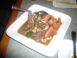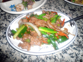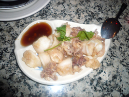 | 本日、最後の晩餐です。MacWorldExpoで会った知人のご推薦で中華料理へ。四川料理だが辛くない。やはり辛いのをよこせと言わないと辛くないらしい。辛いのを望んでいた友人は怒るように麻婆豆腐を辛く作り直せと突っ返す。何も怒らなくてもいいのにね。今度は辛すぎじゃ。 |