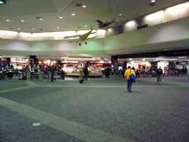 | 前回イージーチェックインでショッキングだったのでちょっと早めにチェックイン。空いてやんの。至る所にアルコール消毒マシーンが。前回あったかな? USのUS Airways Clubで時間を潰してゲートへ。一時期(というか五月蠅くなってから)無かったプライオリティーレーンが出来たので最近はスムーズ。今回初登場のセキュリティーマシン以外になんか個室みたいので上から「プシュ〜」って何度か空気をかけられるマシンに入れられる。これは何じゃらぽ? |