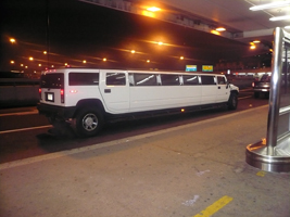 | ニューアークに着いて外に出るとこんなお車が。長すぎだろ。それはさておき、寒いです。寒すぎです。ホテルまでのシャトルを待つのは辛いのでタクシーです。 |