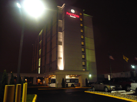 | はぁ〜い、タッチたっちぃ〜。ホテルは前回同様Four Points by Sheraton Newark Airportです。室内プールもありますね。気が付かなかった。ここは寝るだけね。本当はマンハッタンに入りたかったのだが次に取っておきましょう。 |