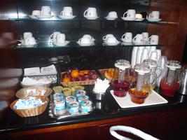 | サテライト5は遠いのでサテライト4の全日空のラウンジに向います。ところで何故サテライトなのでしょうか?コンコースとは違うのでしょうか?馴染めません。 ちょっと本日の食事のチャンスを考えてみました。(01)ラウンジ(02)機内食・朝(03)機内食・到着(04)ラウンジ(05)機内食ディナー(06)おやつ(07)機内食・朝(08)昼(09)夜(10)つまみ。なんと最大10回です。 食べないつもりが思わず4度目の食事を....食後はシャワーです。流石にSIN-NRT-SFOでシャワー無しは辛いです。リフレッシュ。 |