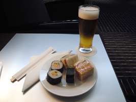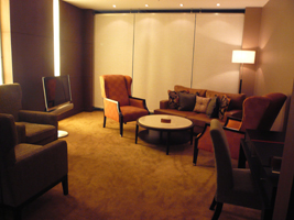 | Royal Silk Loungeを突っ切ってRoyal First Loungeに行ったわけですが、個室が多いね。早朝だったこともあり客も少なかったがやはり人口密度は低いでございます。席に着くと「お飲み物は?」「お食事は?」といろいろお世話していただけます。食事と言っても簡単な軽食ね。何故か画像がないぞ? |