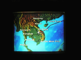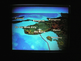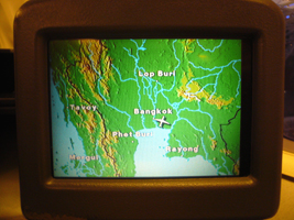 | ラオス上空です。地上より空の星の点の数野報が多いね。全天というか360度星空って感じでしょうか。 残り2601マイルを45分で飛びます。ここからは時速5500キロ以上です。マッハ4と言うところでしょうか。遂にコンコルドを越える日がやってきました。 |