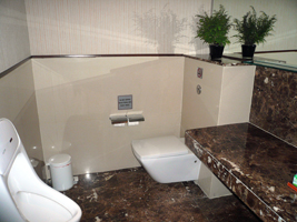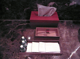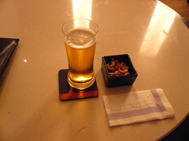 | まずは日本ヘリコプター輸送のラウンジへ。意外と混んでいました。しかしだ、よくまぁ携帯で電話していること電話していること、それもみんな立ってるね。座ってても電話するときには立つのか?公衆電話ブース(そもそもこんなブースがあるのが不思議だ。席に電話を置いておけばいいのではないだろうか?)に入って携帯で電話してる奴らを追い出す職員。不毛だ。なのでメールチェックだけして退散である。そうえいばUAから昨年のクリスマスにワイングラスの代わりのカレンダーの代わりのファーストクラスラウンジご招待券が届いていたので使うことにした。 初めてのエレベータで4階へ。うむ。空間が違う。パソコンは似合いませんな。ビジネスクラスとは人種が違います。「稼ぐ必要のないお金持ち」と「稼ぎ終ったお金持ち」と「その人達の血族」と「修行僧一度限りの招待よ」です。 ブースも広いしオードブルもある。ワイングラスもファーストクラスの物です。食器も違うな。これもファーストクラスの物だな。当たり前だな...。でも二人以上の日本人がやってくるとやはり居酒屋になるのかね。なんであんなに声が大きいのだ?耳が悪いのか? テーブルにワイングラスを置いたのだが手が届きませんよ。こういう生活感が無いと言うことか....。 |