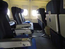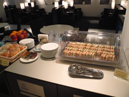 | セキュリティーは進化していました。Mac(方言。英語ではLapTop。日本では一般的にPCと言います。昔と違ってMacを使っているというとマイクロソフト信者に迫害されます。)は外に出します。セキュリティーを抜け、2つしか空いていない出国審査を抜け、一目散に日本ヘリコプターのラウンジへ向います。既にRCCには興味がありません。 ラウンジに到着してPNRをチェックすると案の定ORD-EWRのアップグレードはコンファームされてません。しかもItineraryは途中が抜けています。ご希望通り声を上げさせてもらいます。 ガラガラです。 |