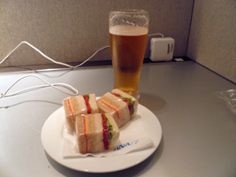 | さてターミナル1のセキュリティーを通ってモニターを見るとディレイです。荷物預けちまったよ...。その前の便は、ディレイです。やばい。ニューヨーク線は軒並みディレイ。中にはキャンセルも。しょうがないのでCコンコースのRCCで130分ディレイを待つ。そろそろ搭乗かと思いゲートに行くと更に60分のディレイ。一応モニターにはアップグレードがコンファームされているといううれしいお知らせ。今度はBコンコースのRCCで待ちぼうけ。すると更に60分のディレイ。結局Business1路線で190分のディレイです。長い。スーパーマリオからぺらぺらの搭乗券を受け取り搭乗すると先にアサインされていた唯一の1Bに鎮座することになり。周りの7席には広大な敷地を極東地域に持つあの方々の8人の団体様が包囲網を張ってきました。ま、一人はエコノミーに行ったので日中戦争は勝利である。しかし、不思議なのはあの方々、隣同士ではお話にならない。前後で話すのだよ前後で。なぜ並ばない? 搭乗して昏睡状態になったのだが、離陸時に時計を見ると更に60分経ったようである。合計250分ディレイ。 でだでだ、食事が出ないぞ?無くなったようだ....。1食分が....。サラダがぁ〜チャウダーがぁ〜サンドイッチがぁ〜悲しい。ペプシ下さい。 |