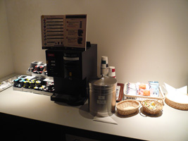 | 中でコーヒーが頂けます。ちょっと面倒ですがまずくはない泥水です。ハイテクです。 |