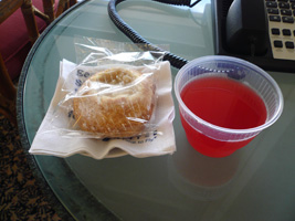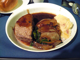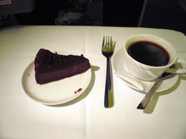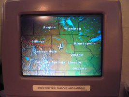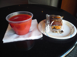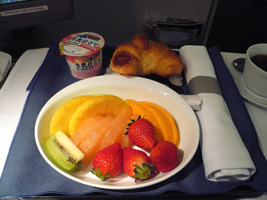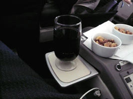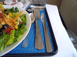 | のんびり起きてタッチ終了です。何事もなくシャトルバスで空港へ。何事もなくチェックインして、何事もなくRCCで一息ついて、何事もなく搭乗です。流石にデンバーまでは4時間以上あるので食事が出ます。 |