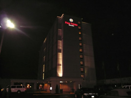 | EWR到着です。ここも寒い。ホテルはいつもの(いつものになってちょっと悲しい)Four Points by Sheraton Newark Airportです。今回はPreferredGuestRoomにアップグレードだそうです。何が違うんでしょうね...景色だな...。 |