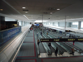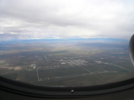 | 何もないところに突然現れるデンバー空港。でかい。60のゲートが2列に並ぶんだから端から端だと大変ですよ。 |