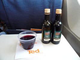 | さて、悪しきTEDです。地学のお勉強の時間なので窓側に陣取りました。$10分の赤ワインを頂きました。 |