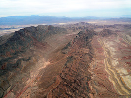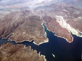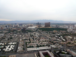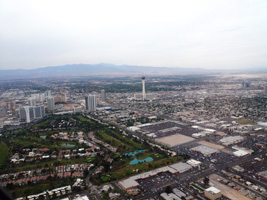 | 地学のお勉強も終り、ラスベガス到着です。珍しくダウンタウンの方から着陸です。 |