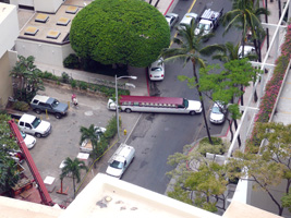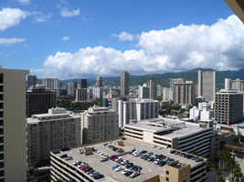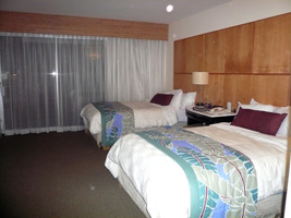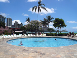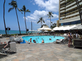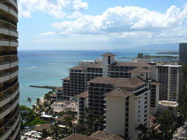 | Sheraton Waikikiです。何故かワンチャンスで奇跡的に取れた。ワイキキのSheraton系はシェラトンワイキキとロイヤルハワイアンとシェラトンモアナサーフライダーとシェラトンプリンセスカイウラニがあるわけだが、シェラトンプリンセスカイウラニ(あ〜長ったらしい)は全く空きがなし、一番安いのはシェラトンモアナサーフライダーの$276であり、シェラトンワイキキとロイヤルハワイアンは$300を遙かに超える金額しか出てこなかったのだが、ある日ある時、検索したら出てきた。思わず予約したが(インターネット特別料金ではない)、2度と出てきません。$200ちょいです。しかもシティービューが直前にオーシャンビューに変りました。甘えます。 |