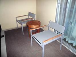 | この冷蔵庫は左開き。慣れていません。ラナイのセットは椅子が...。座面の奥行がありすぎです。絶対に背中が付きません。寄りかかれません。 |