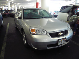| HNLに到着してHertzのバスを待って乗込んで名前を告げて暫く走ってHertzの営業所へ。これって歩いた方が早くないか?ターンテーブルから荷物取ってすぐだぞ....。しかも、カウンターから車までの距離より、ターンテーブルから車までの距離の方が近いぞっと。 H1からワイキキを目指し、日本人しに行きます。 一番安い車を予約していたのだが、なんかでっかいぞ。Chevrolet Malibu登場です。カーナビも付いています。小さい車で問題なかったのだが....。3段階アップグレードです。ま、いっか。 |