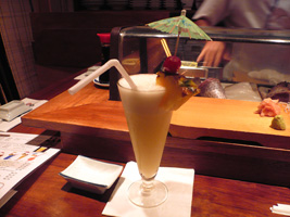 | 踊り子という良く自分のことをしゃべる鹿児島人(お前の人生観なんか聞いてないんだよ)のいる白人相手のお高い店の寿司カウンターです。「うるせ〜よ、そんなの知ったことか」って言ったら黙りました。既に落し物のせいで冷たい食べ物(と言うか、ぬるい生もの)ばかりで体調不良に気づきました。やはり日本食ばかりは限界です。こうなりゃ自棄なので酒に逃げます。マイタイにブルーハワイにチチです。余計憂鬱になりました。この類の食料の問題点はメリハリの効いた美味そうな「匂い」が無いと言うことでしょう。日本の空の色のような匂いとでも言いましょうか...。 関係ない話しだが、DO!スポーツに行ったって食べてりゃ痩せませんよ。そもそも他人にダイエットを委ねる人は委ね続けるのだ。つまり痩せることはない。食べたきゃ少量をゆっくり食べるのだ。ダイエットしたい人(出来る人ではない)は食べるのも速けりゃ噛むのも速い(少ない)。人それぞれだが....。 |