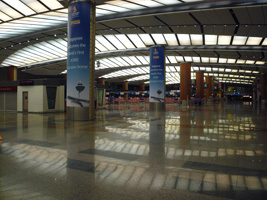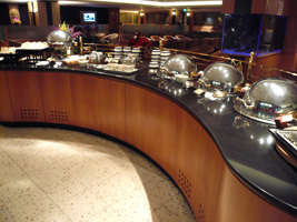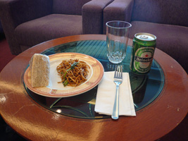 | チェックインを済ませラウンジへ。ところがぁ〜やってねぇ〜。何々?5:15にオープンするだと?あと15分ね....。はいはい。 前回はファーストラウンジで今回はビジネスラウンジです。が、奥まで行ってファーストの受け付け行ったら何故か入れてしまった。使わせて貰おうじゃないの。 |