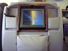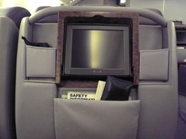 | 機材は772のFYの2クラス運用ですな。FはFと言ってもCクラスのライフラットシート。ここで一つ問題が。余りにも短いフライトタイムなのでヘッドセットは配られないようである。と、言ってもこちらはお上りさん修行僧なのである。あらゆる物をいじってみたいのである。このシートのAudioOUTは左右別なのね....。常用のソニーのノイズキャンセラーイヤフォンだとピンジャック一つなのよね....。 |