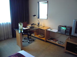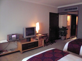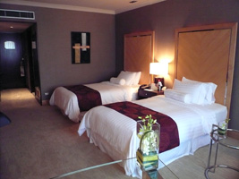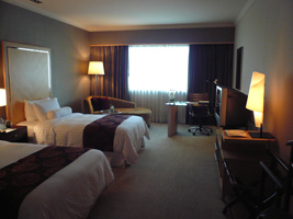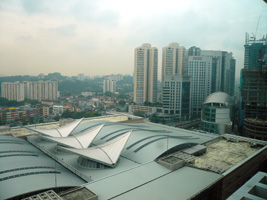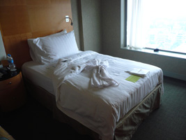 | ホテルはLe M?ridien Kuala Lumpurである。ま、SPG系で一番安かったと言うだけである。でも高いな。行ってみると「ん?Hilton?」そうです、ここはHiltonとLe Meridienのツインタワーになってます。 |